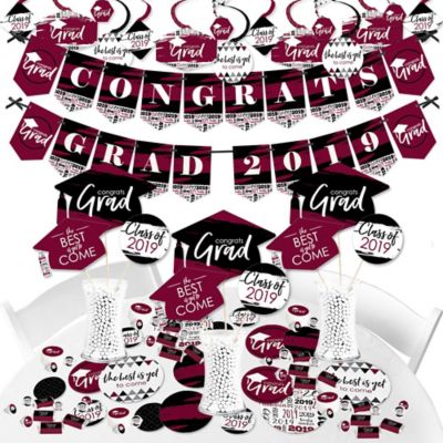 For a unique graduation party idea, host a luau party! Celebrate with graduation party decorations for kindergarten, high school, college, medical school, or trade school. Announce the news of your grad's commencement with large party props and hanging decor. Find the graduation party supplies and decorations to match any personality or ceremony at windy city novelties. Honor your graduate's milestone and proudest moment with a uniquely designed announcement. These are the most affordable: Grab your graduation party essentials with graduation candy buffet and cake table supplies, photo cutouts and favors. 2021 graduation party supplies & decorations. View our maroon cups, plates, napkins, balloons, and decorations — just $1 each! Pick out a theme or supplies to plan your perfect graduation party. Celebrate his or her milestone achievement in style. Black owned and black founded brands. Make personalized burgundy graduation decorations: